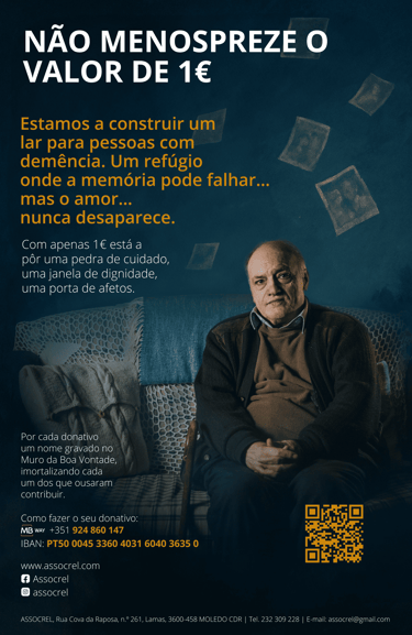 Através do lançamento da campanha a nível nacional e online “Não menospreze o valor de 1€”, a ASSOCREL pretende angariar fundos necessários para a construção de uma nova Estrutura Residencial para Pessoas Idosas (ERPI), com uma ala especializada no acolhimento e acompanhamento de utentes com demências, inexistente no distrito de Viseu.